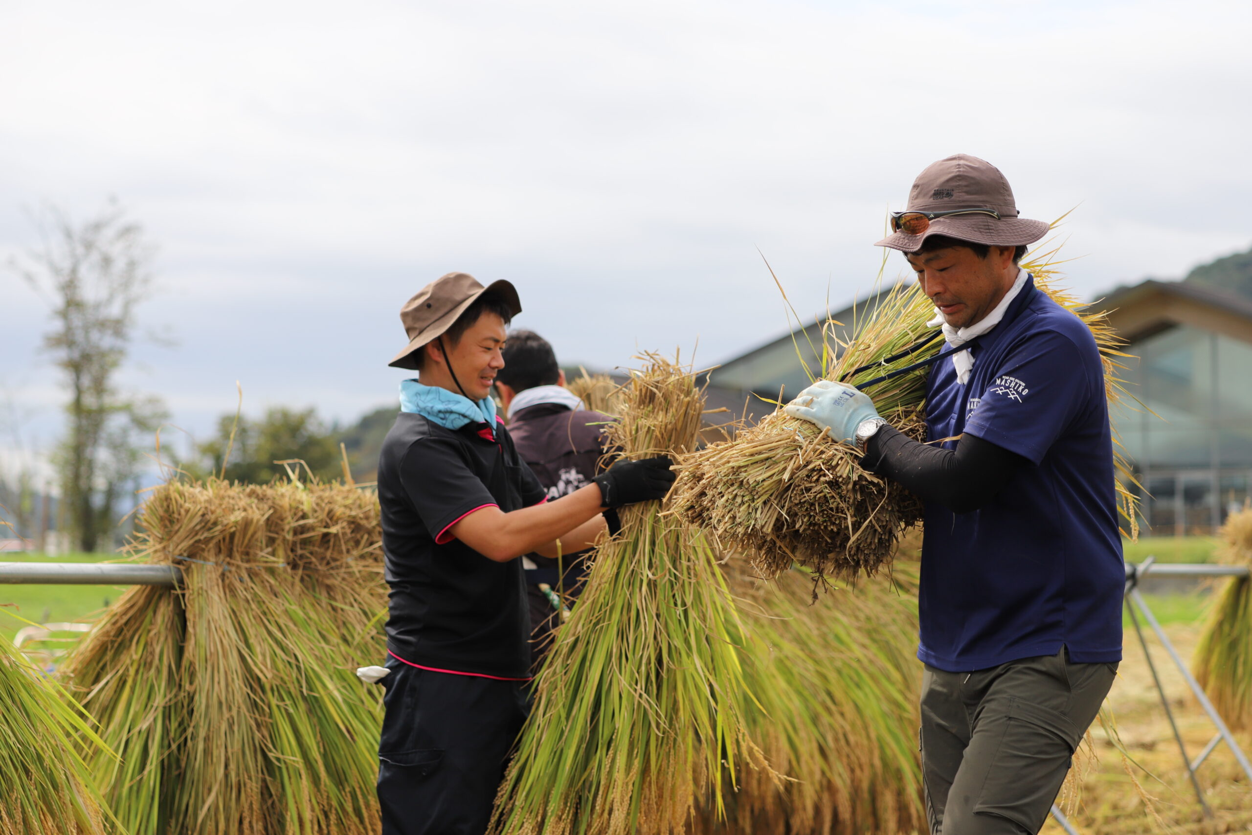 ましこ農の学校は、益子町が農業後継者や新規就農を志す方を対象に、農業の基礎知識から実習までを体系的に学ぶことができる実践的な研修事業です。今回の稲刈りはカリキュラムの一つとして、受講生たちは昔ながらの「おだがけ」による稲の乾燥方法を体験しました。